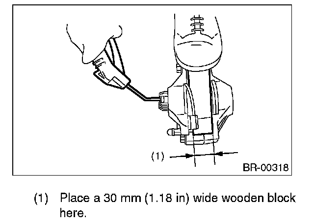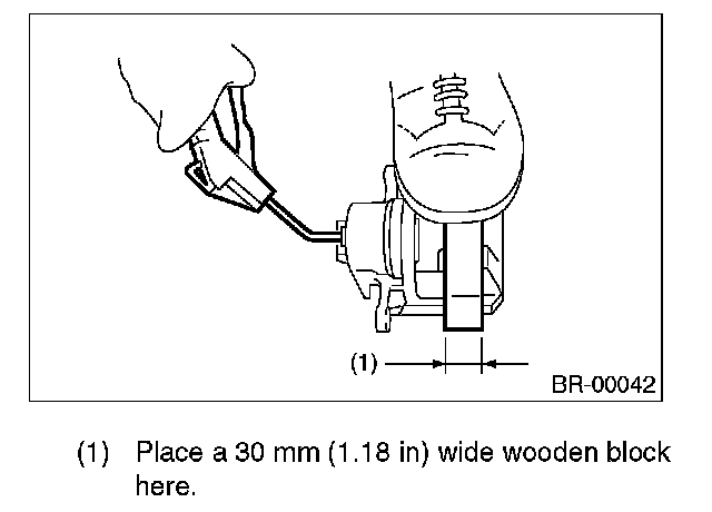 3. Place a wooden block in caliper body as shown in the figure to prevent the piston from jumping out and avoid being damaged.