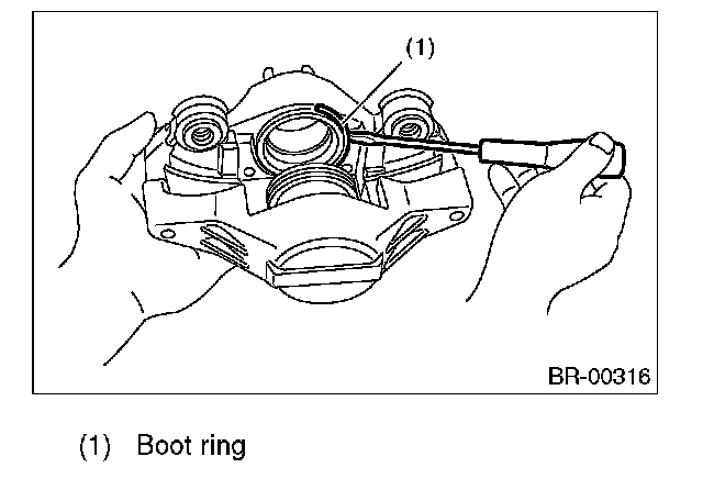 6. Install the piston boot to caliper body, and then attach boot ring.