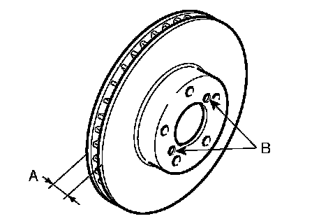 NOTE: If the disc rotor seizes up within the hub, drive the disc rotor out by installing an 8-mm bolt in holes B on disc rotor.