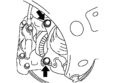 4. Remove the caliper body and support from housing, and suspend it from strut using a wire.