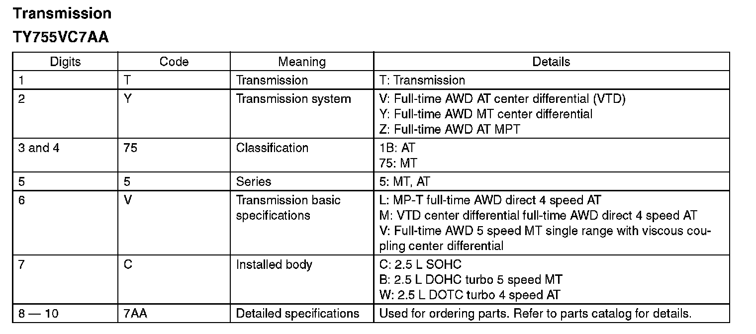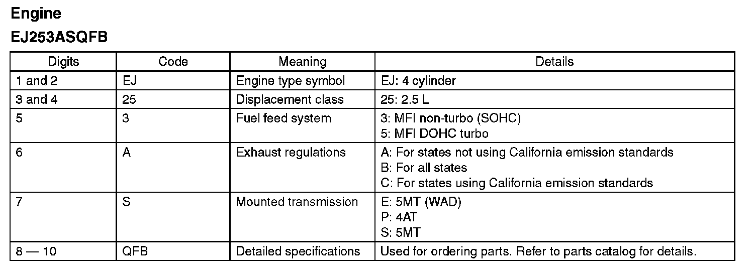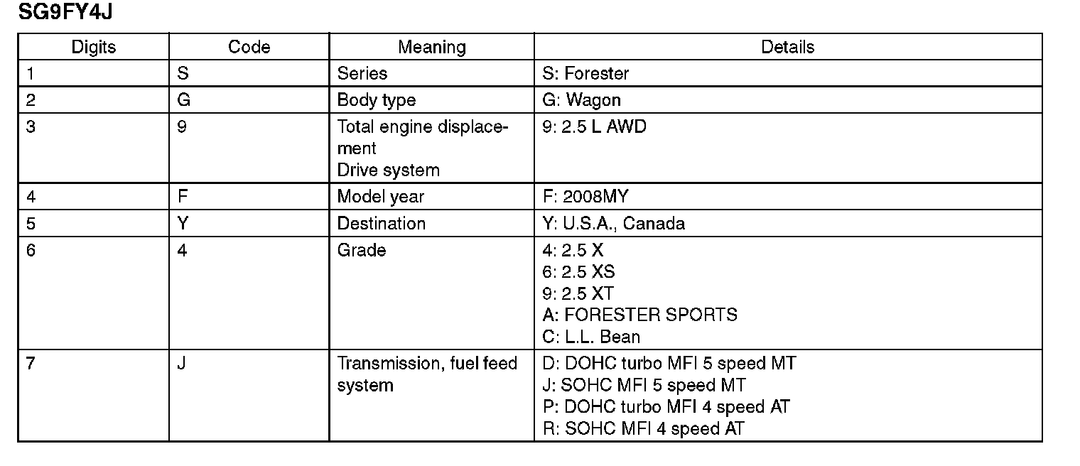 The model number plate indicates: the applied model, the option code, the trim code, the engine type, the transmission type, and the exterior color code. This information is helpful when placing orders for parts.