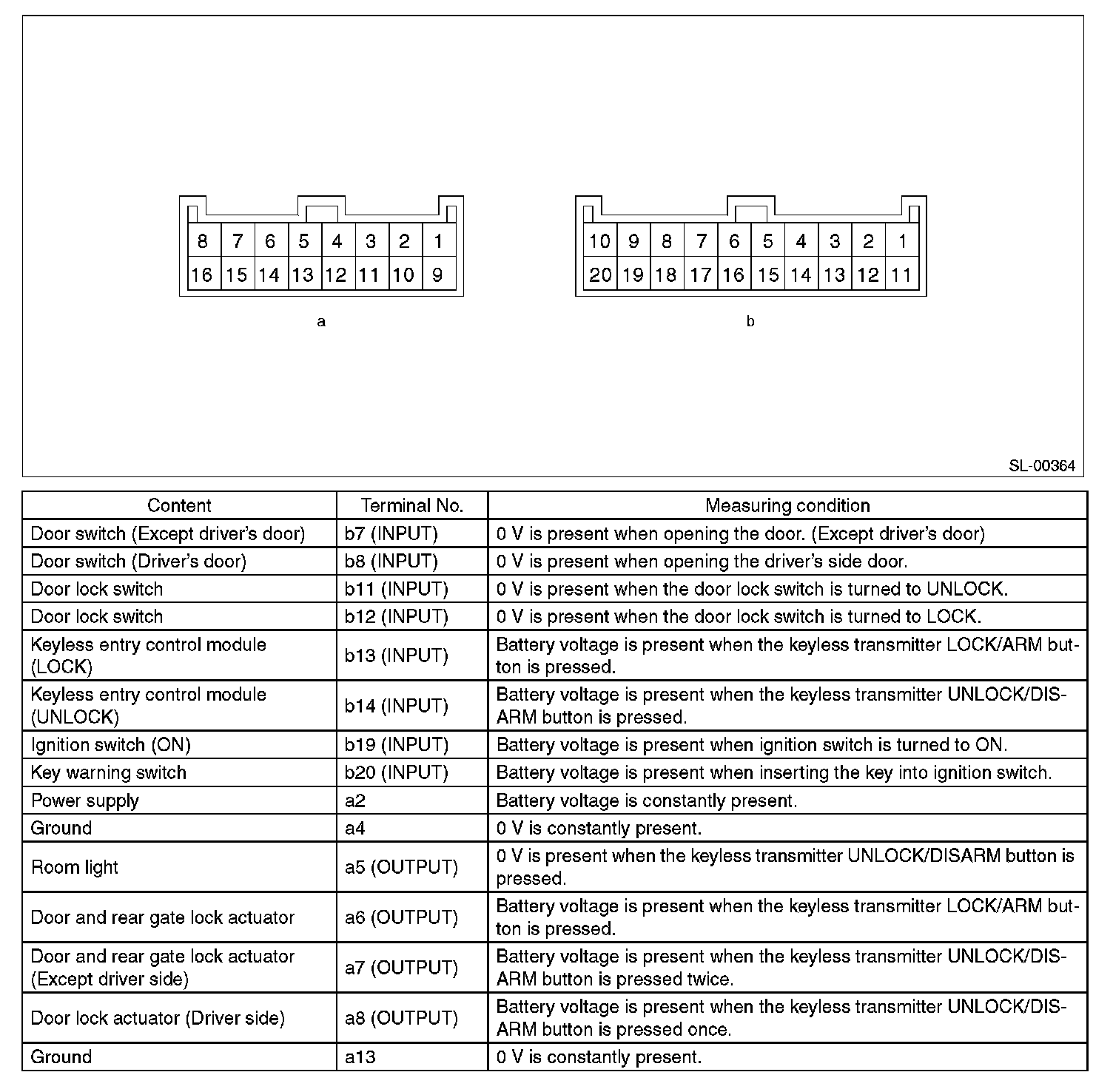 Electrical Specification - Keyless Entry Control Module: