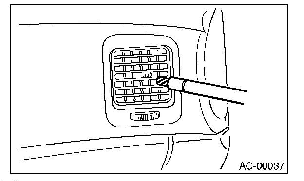 11. Turn the ignition key to the ON position, and run the blower at high speed for approx. 1 minute. Stop the blower to check the ventilation grille on the instrument panel. While moving the tester closer to the grille, run the blower for 1 or 2 seconds, then stop it. Check the grille at that point for at least 10 seconds.