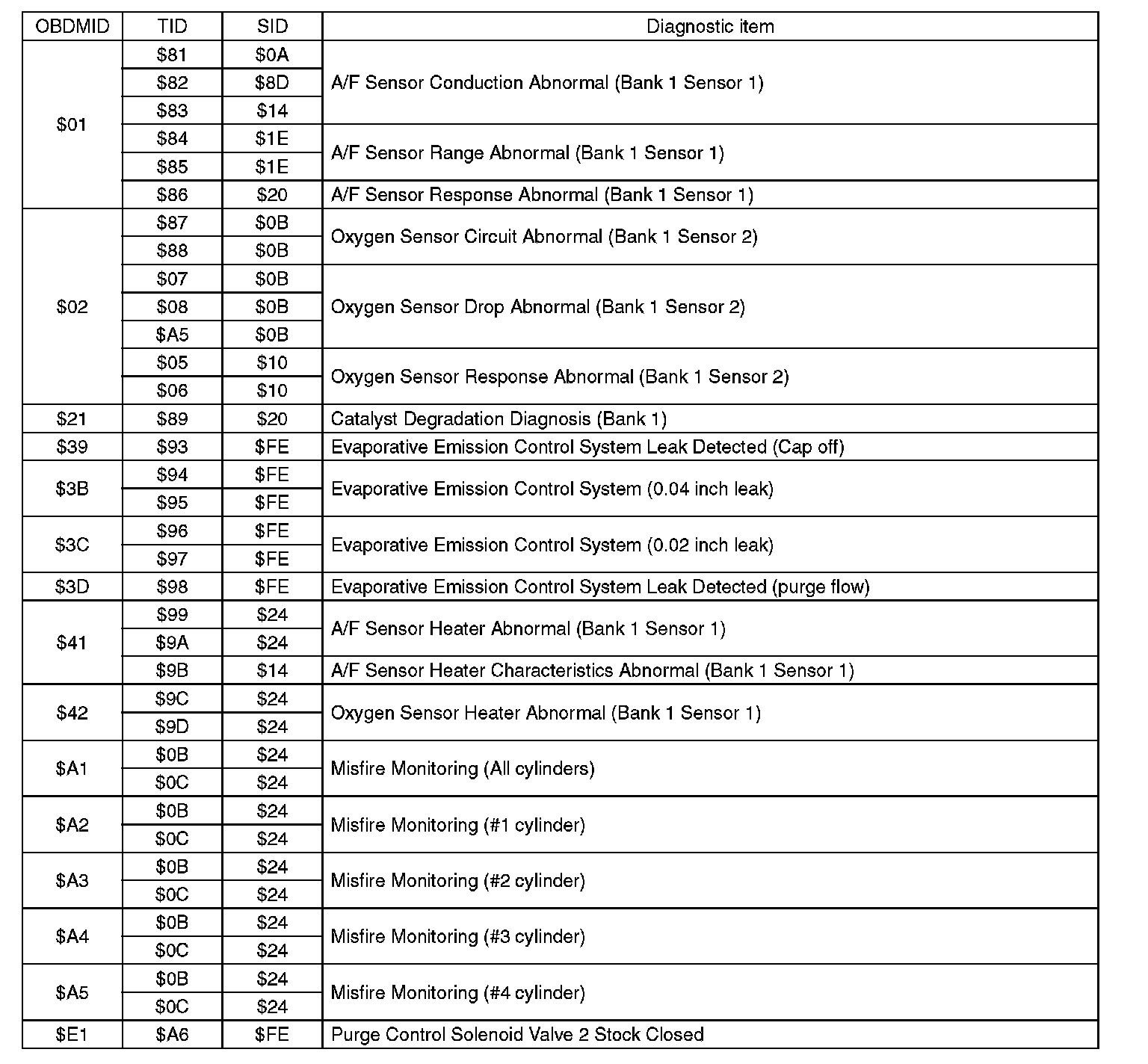 Refer to the test value of troubleshooting and data of test specification on the support data bit sequence table. A list of the support data is shown in the given table.