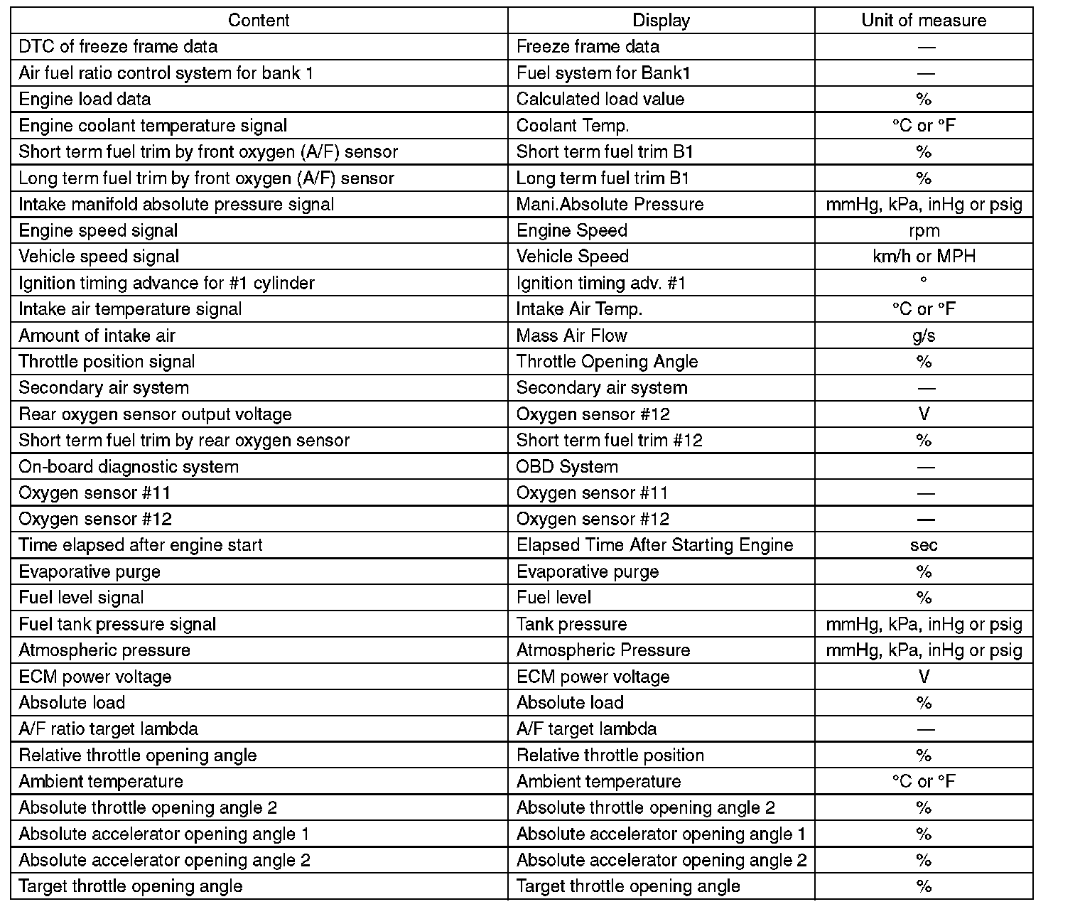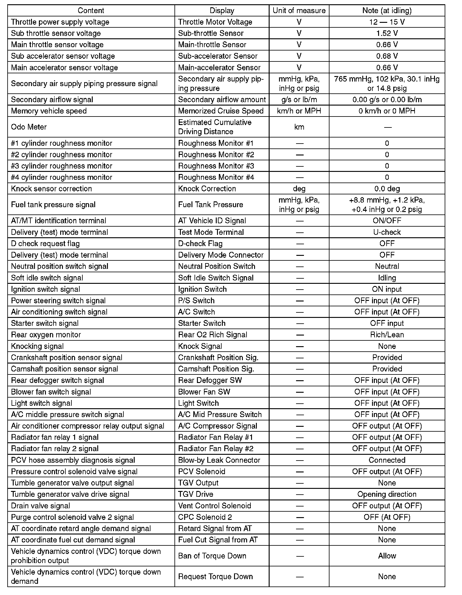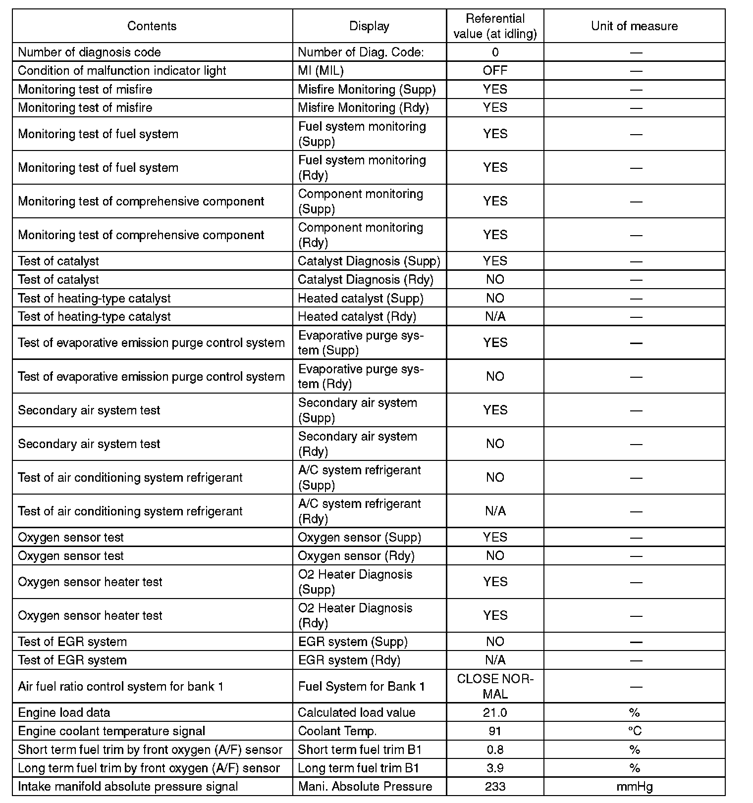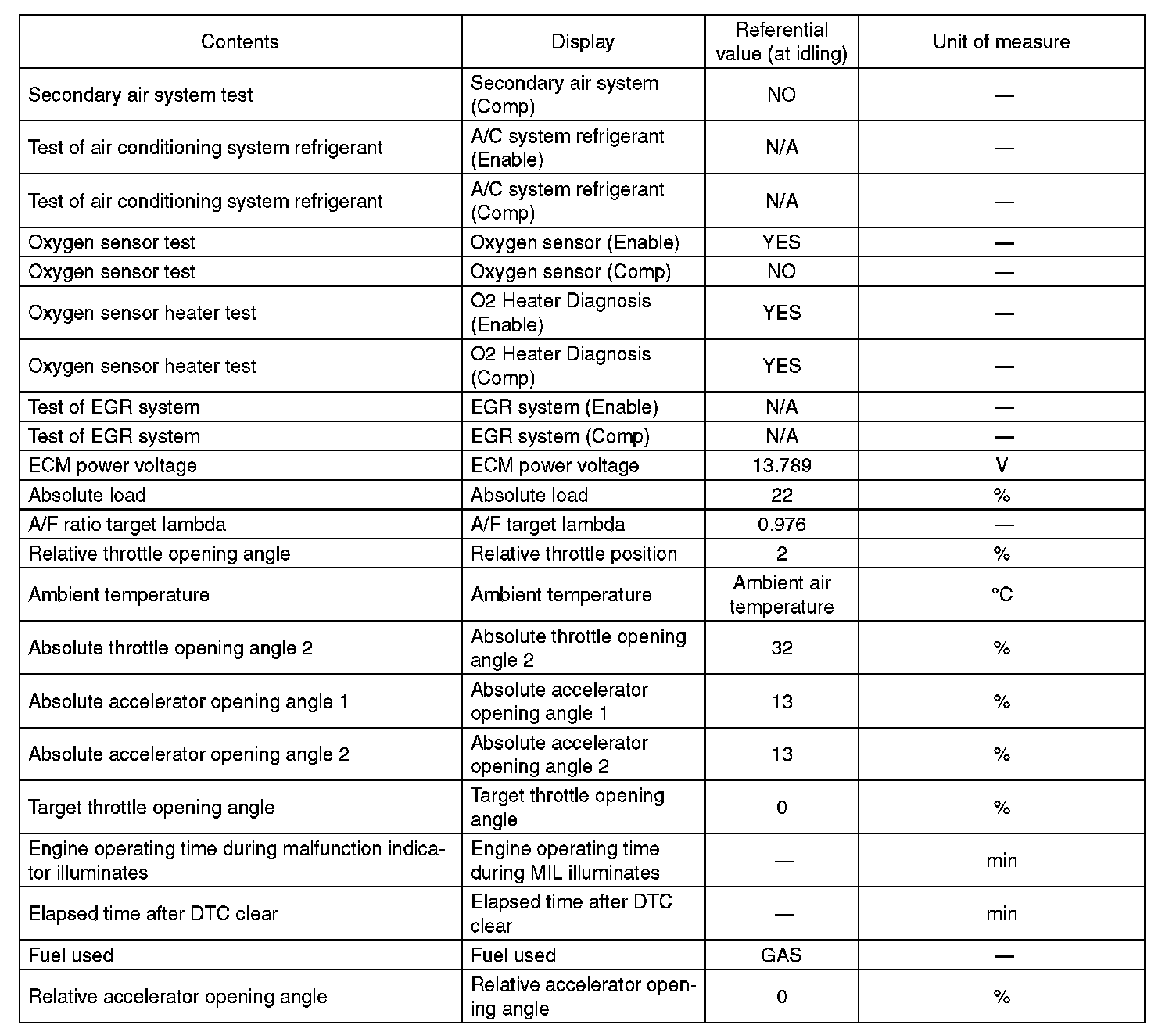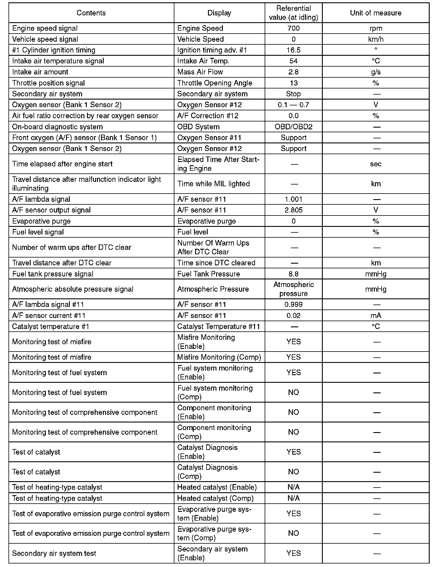 5. READ CURRENT DATA FOR ENGINE (OBD MODE)