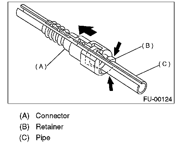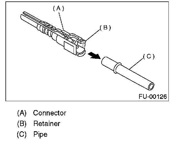 1. Set the new retainer (B) to connector (A).