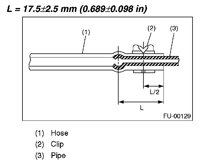 2. Connect the fuel delivery hose and return hose to the pipe with an overlap of 20 to 25 mm (0.79 to 0.98 in).