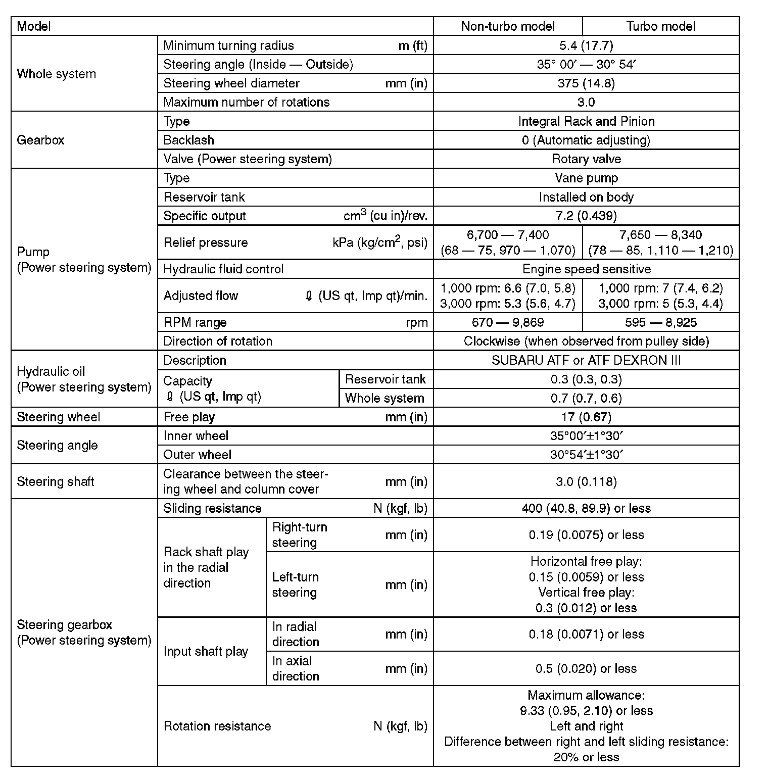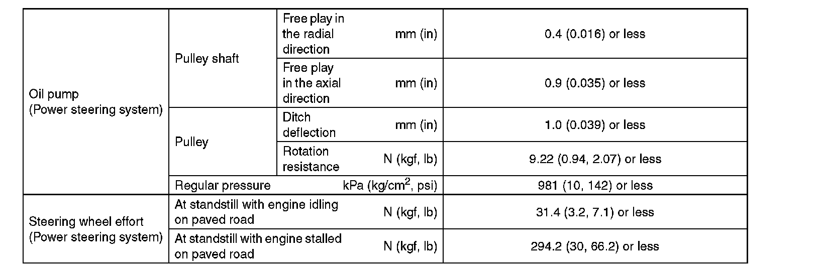 The table below lists various clearances that must be correctly adjusted to ensure the normal vehicle operation without interference noise, or any other faults.