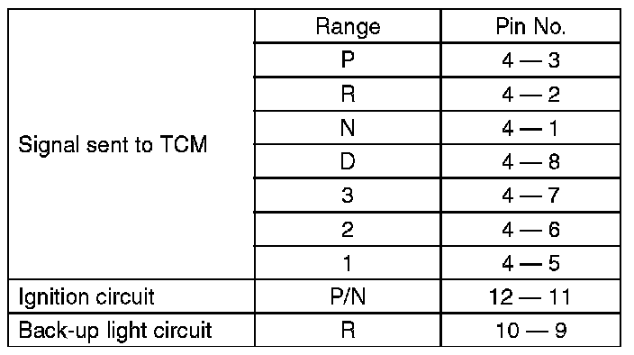 ^ Also check that there is no continuity in ignition circuit when the select lever is in the "R", "D", "3", "2" and "1" ranges.