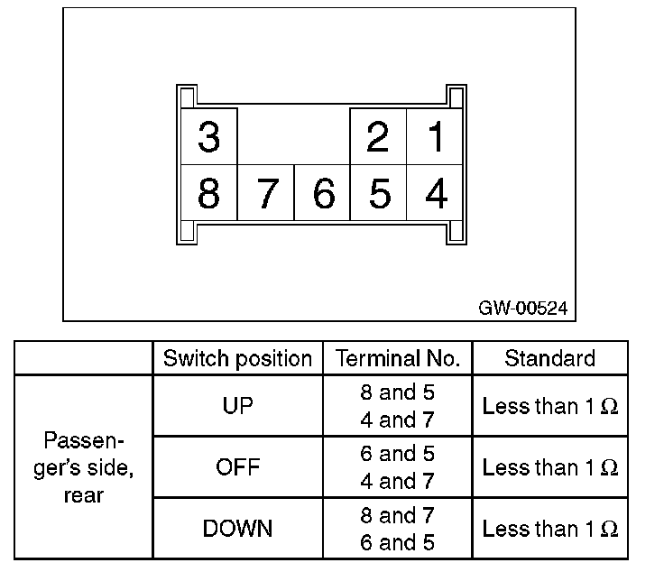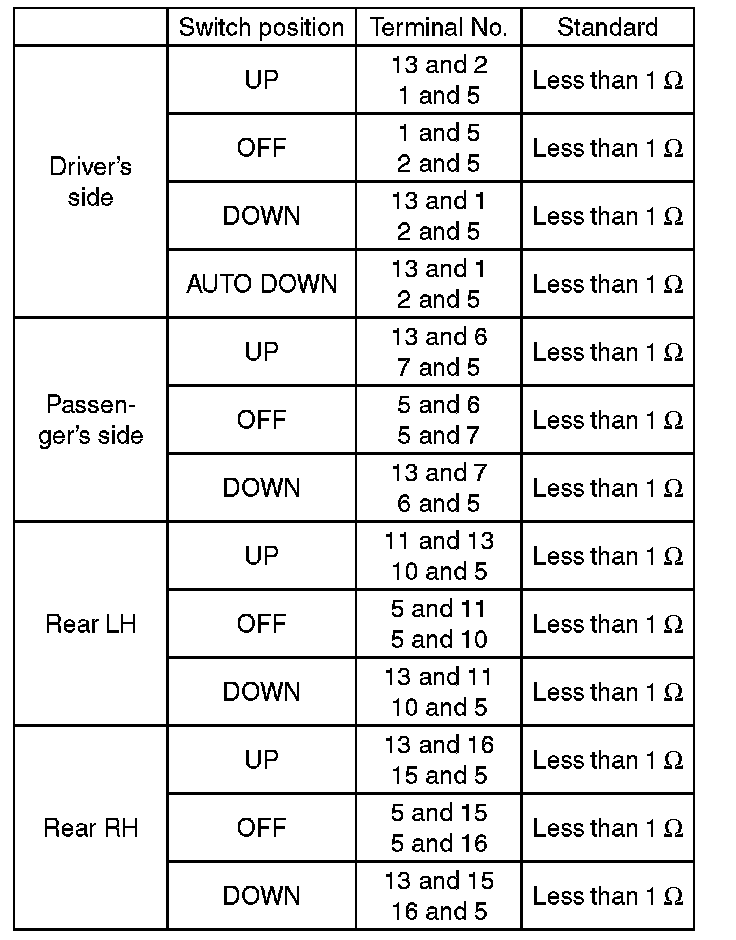 POWER WINDOW CONTROL SWITCHINSPECTION