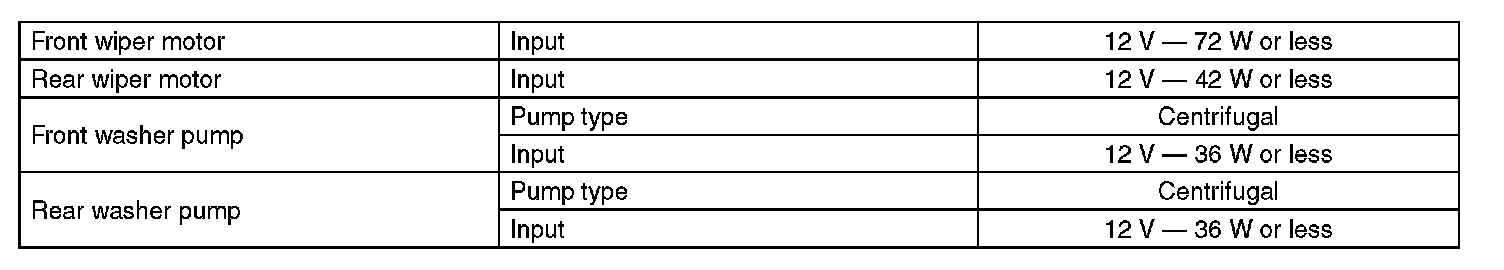 Wiper and Washer Systems: Specifications