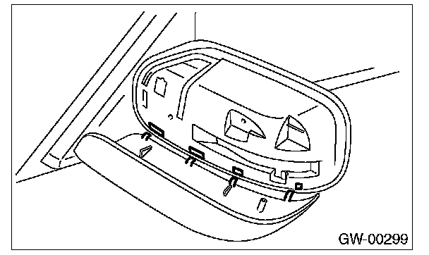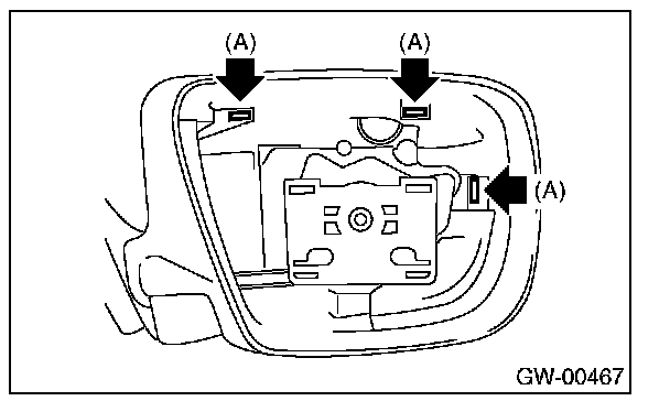 2. Press-in the upper side clips (A) from inside of outer mirror.