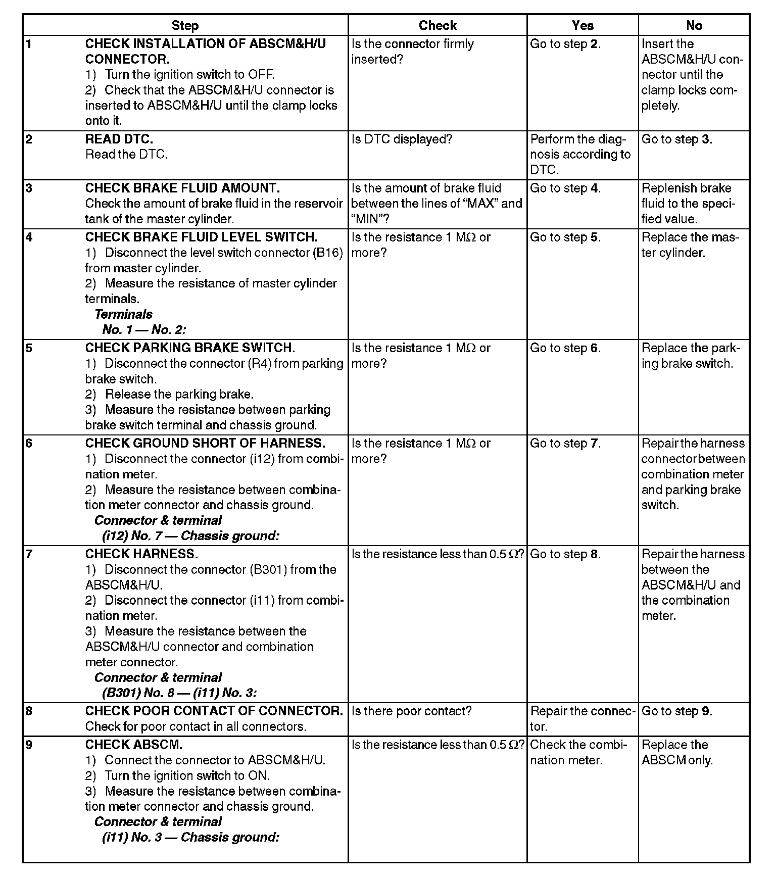 3) When the ABS warning light does not go off, check the combination meter circuit.