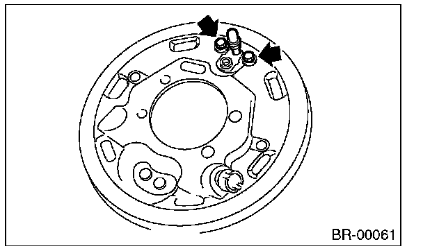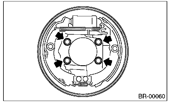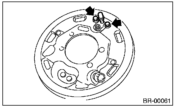 2) Install the wheel cylinder assembly on the back plate, and tighten bolts.