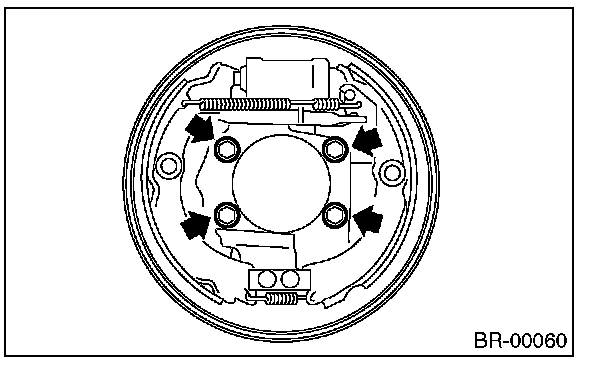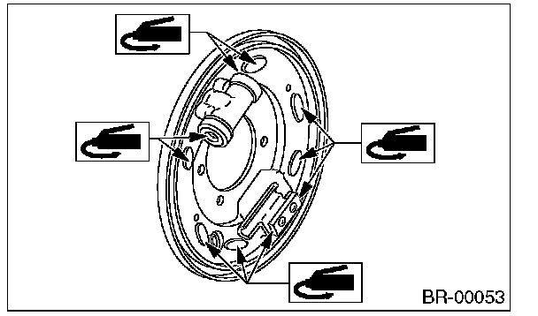 If the deformation or wear of back plate, shoe, etc. are severe, replace them.