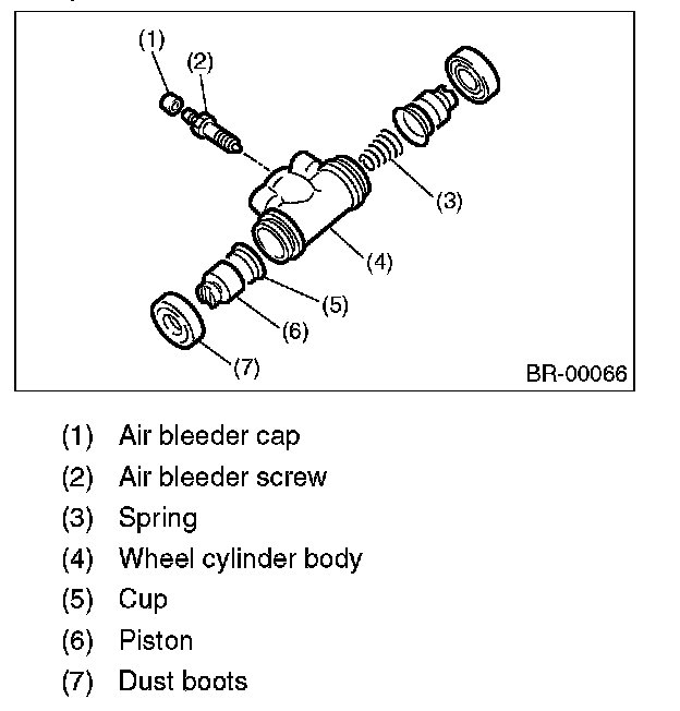 CAUTION: When replacing with the repair kit, make sure that the sizes of wheel cylinder body and cup are the same as those being replaced.