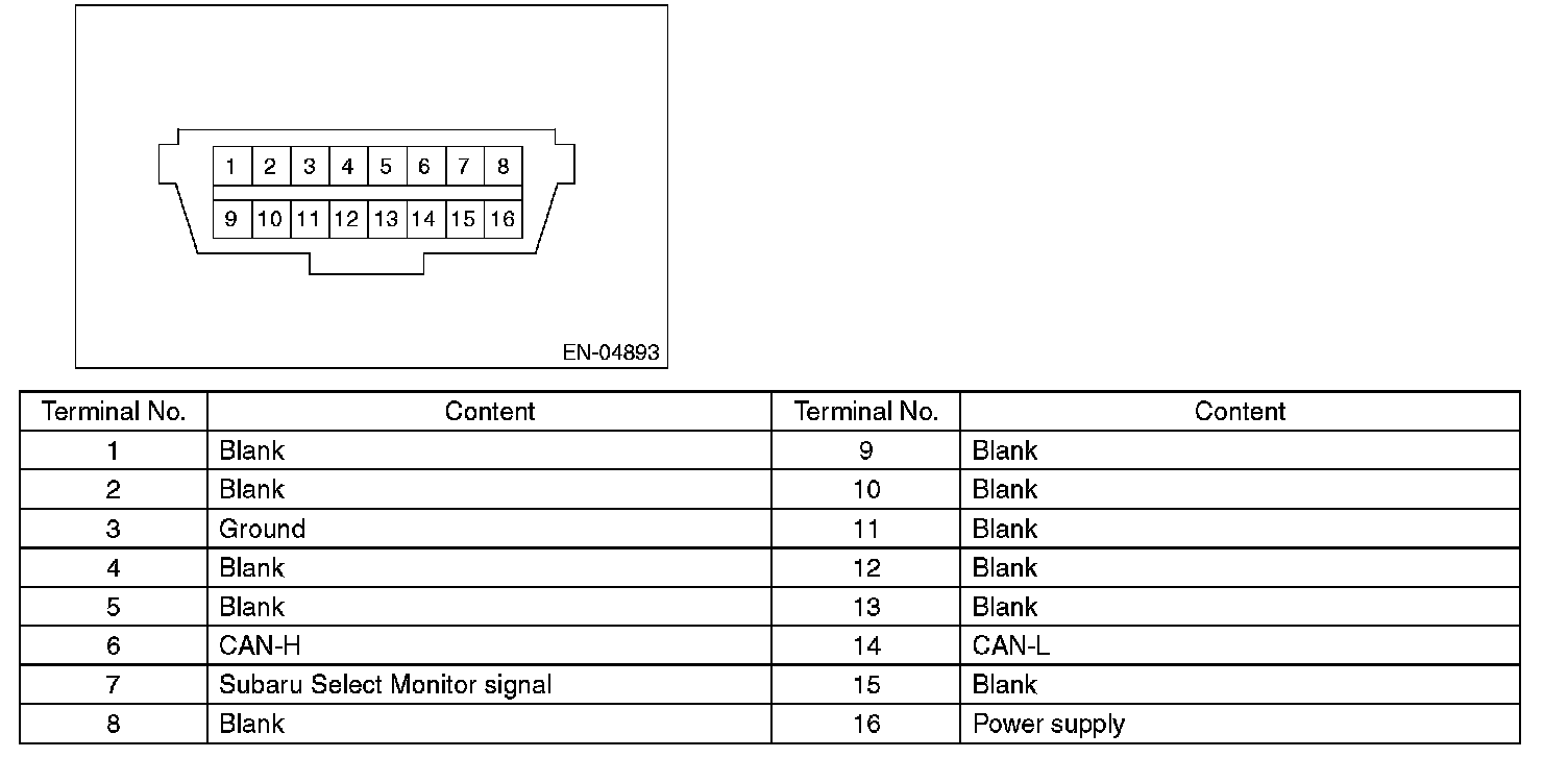 CAUTION: Do not connect any scan tools other than general scan tools and the Subaru Select Monitor, because the circuit for the Subaru Select Monitor may be damaged.