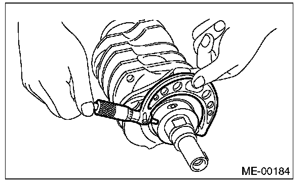 2) Measure the bend of crankshaft. If it exceeds the limit, correct or replace it.