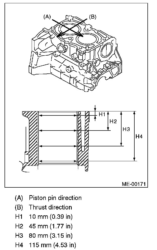 2) If the cylinder inner diameter exceeds the limit after boring and honing, replace the cylinder block.