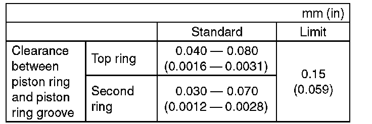 NOTE: Before measuring the clearance, clean the piston ring groove and piston ring.