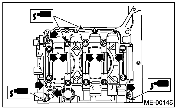 3) Apply liquid gasket to the mating surfaces of cylinder block (RH), and position the cylinder block (LH).