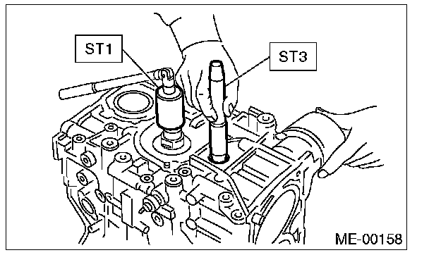 2) Using the ST1, turn the crankshaft so that #1 and #2 connecting rods are set at bottom dead center.