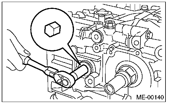 25) Remove the service hole plug using a hexagon wrench (14 mm).