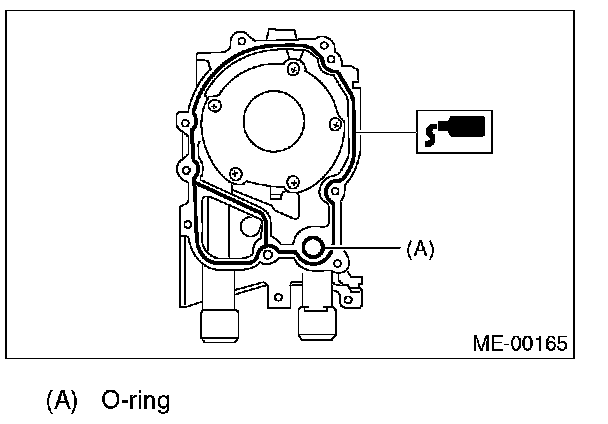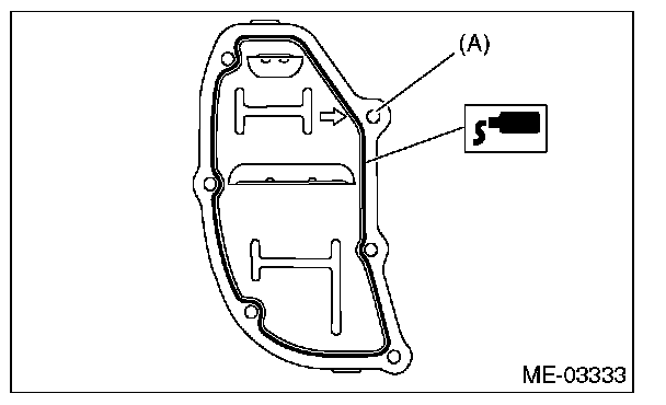 ^ Do not allow liquid gasket to jut into O-ring grooves, oil passages, bearing grooves, etc.