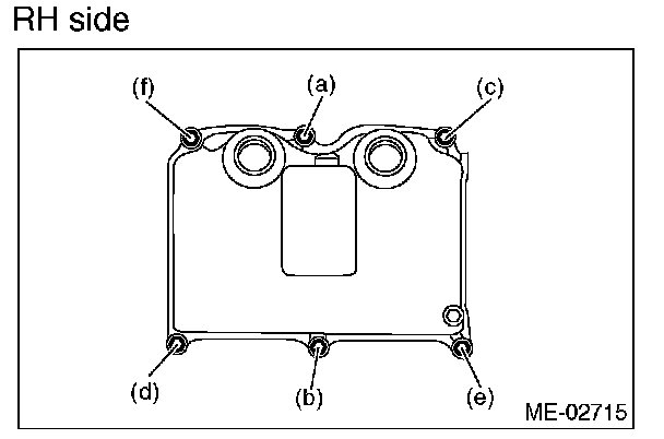 6) Tighten the 10 mm cylinder block connecting bolts on the RH side (E - J) in alphabetical order.