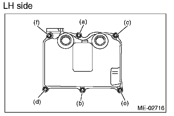 11) Tighten the 8 mm and 6 mm cylinder block connecting bolts on LH side (A - H) in alphabetical sequence.