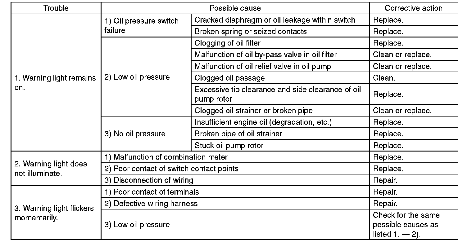 Engine Lubrication System Trouble in General INSPECTION Before performing diagnostics, make sure that the engine oil level is correct and no oil leakage exists.