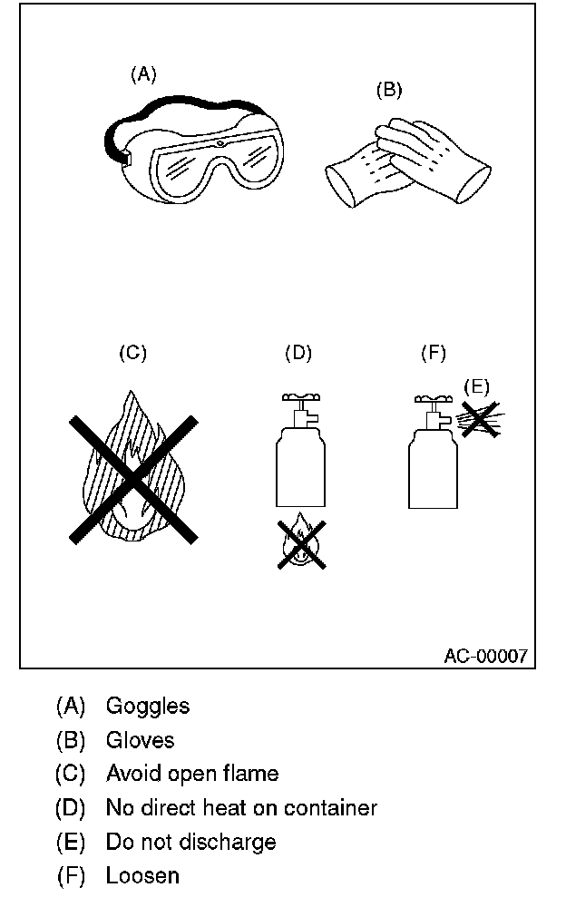 - Do not drop or impact a service can. (Observe the precautions and operation procedure described on the refrigerant can.)