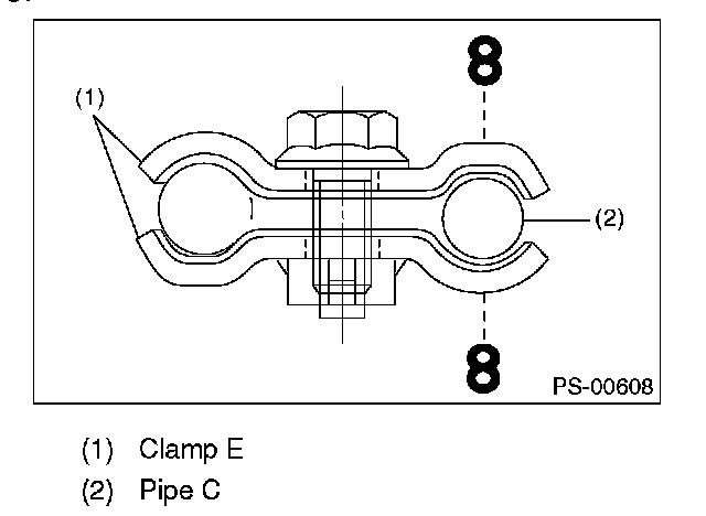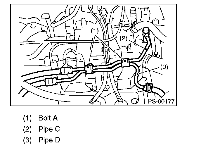 1) Temporarily tighten the two bolts (bolts A) fixing pipe C and D in place.