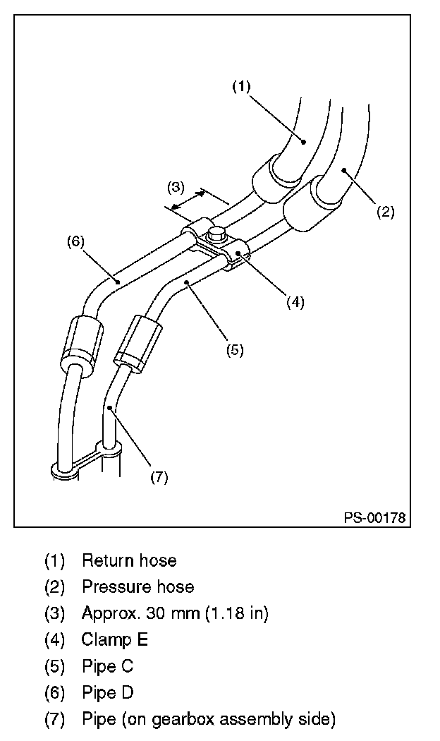 11) Finally, check clearance between pipes or hoses as shown in the figure.