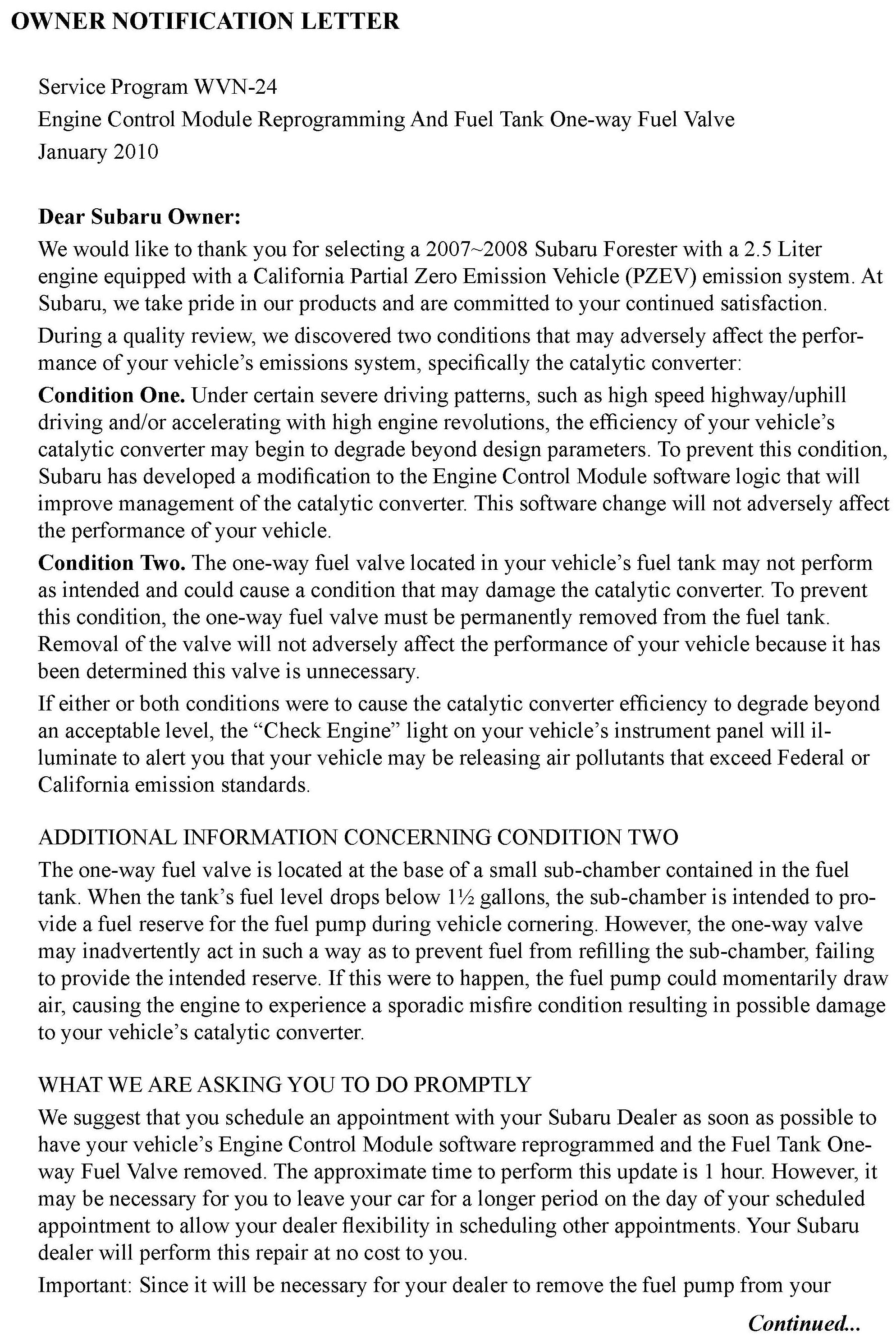 Campaign - ECM Update/Fuel Tank One Way Valve Removal