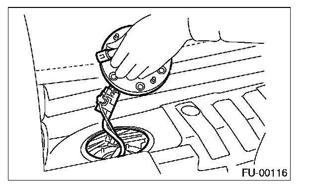6. Remove the bolts which install fuel sub level sensor on fuel tank.