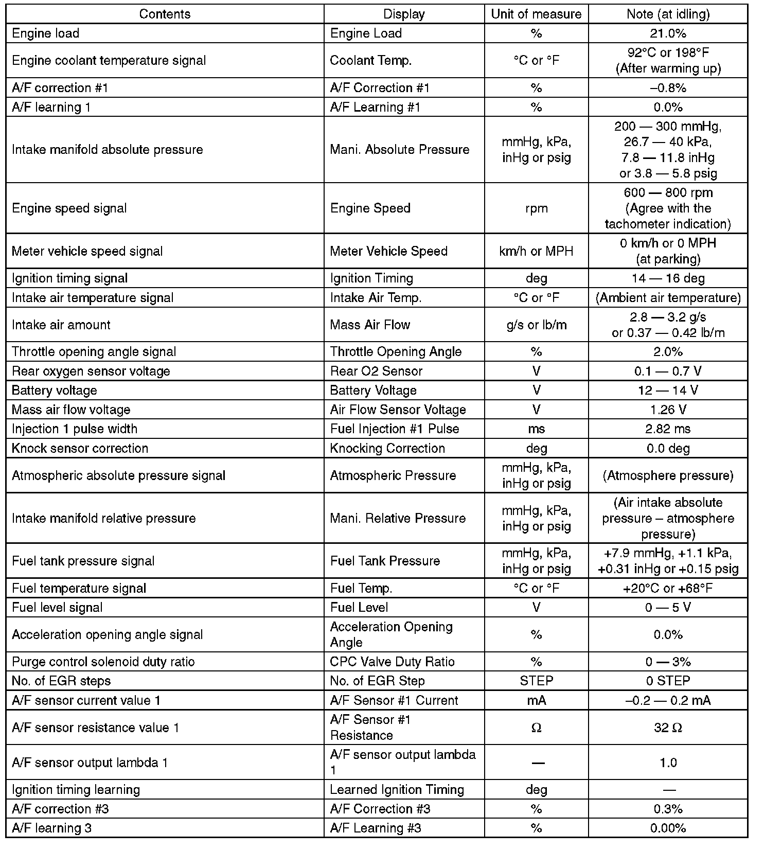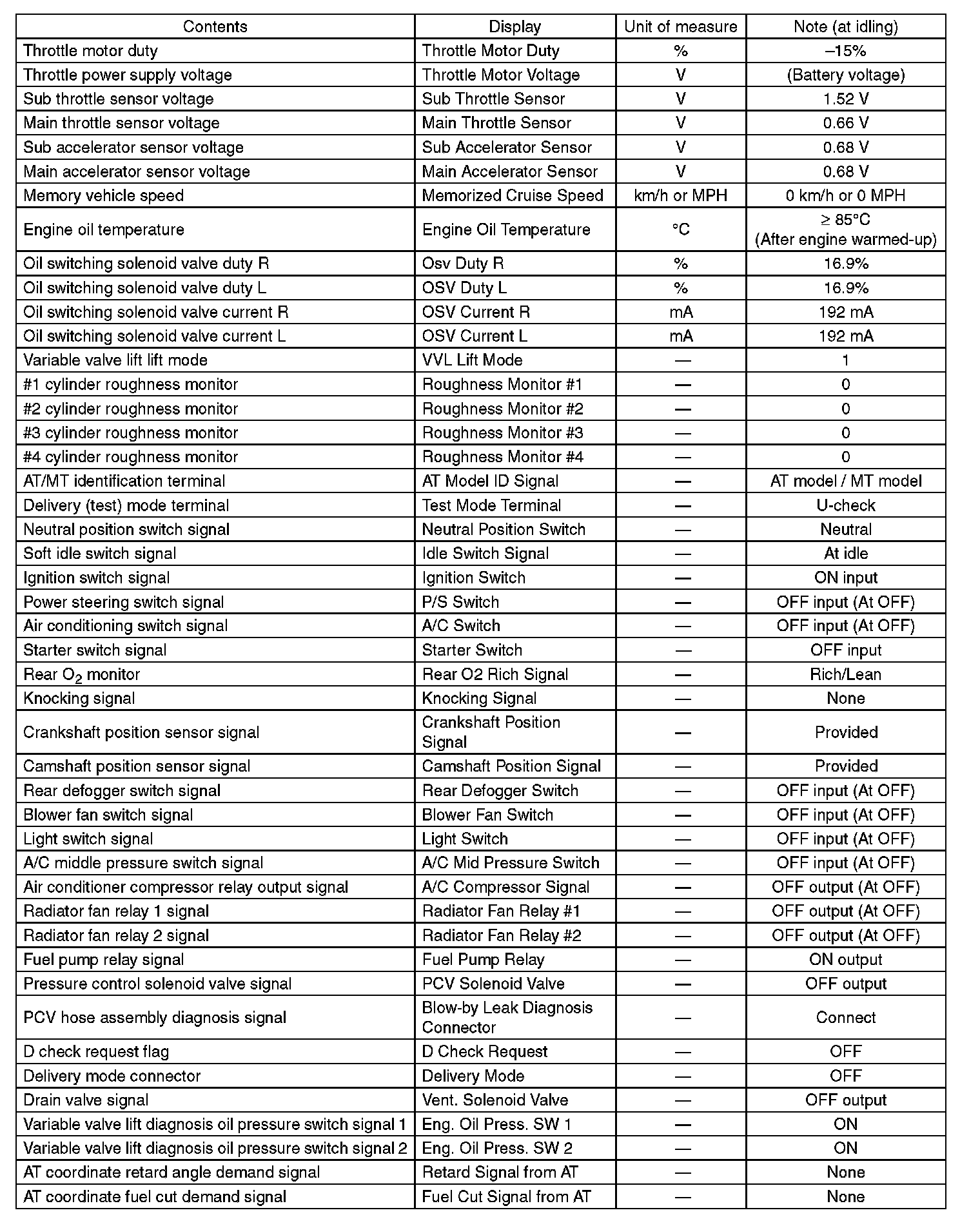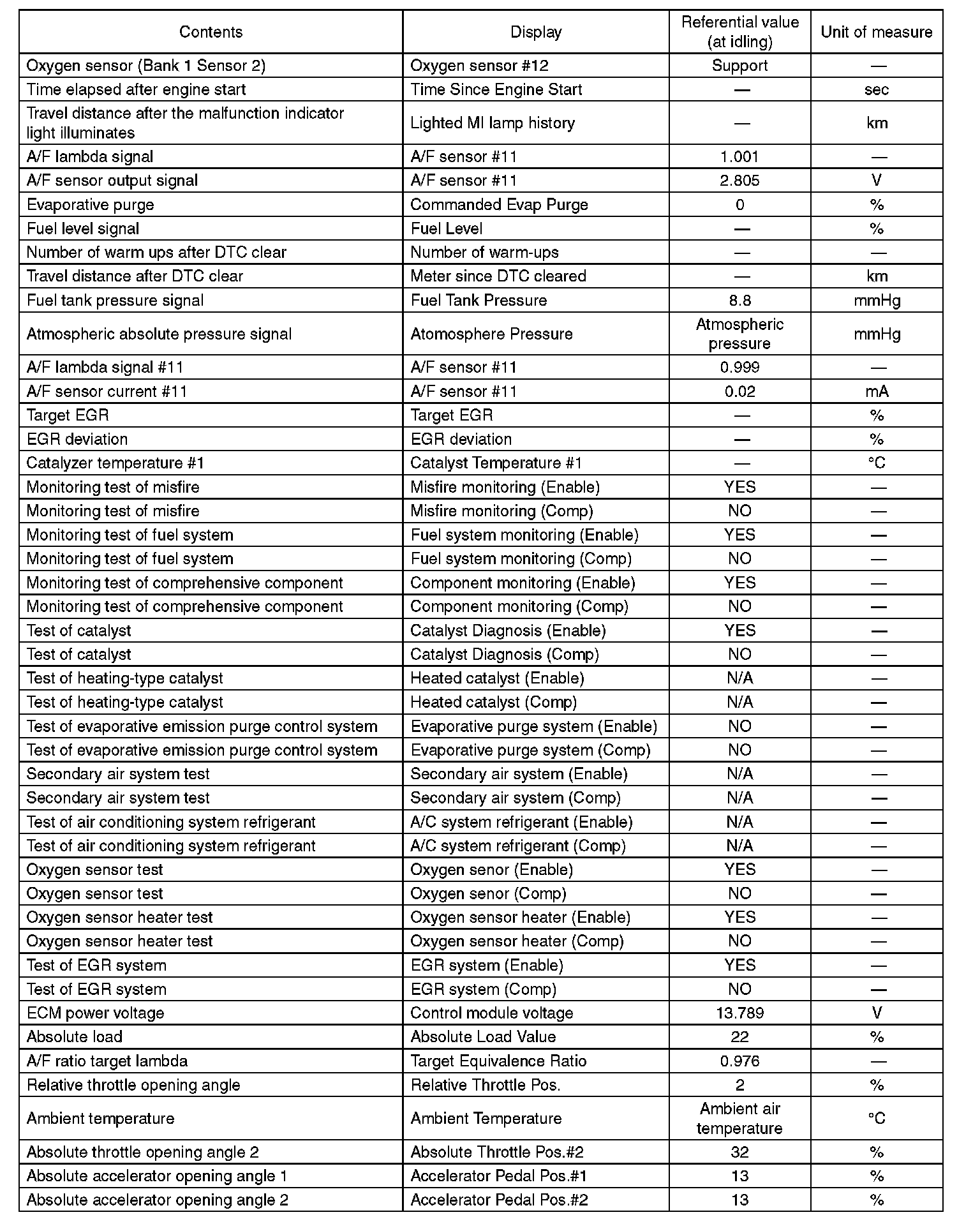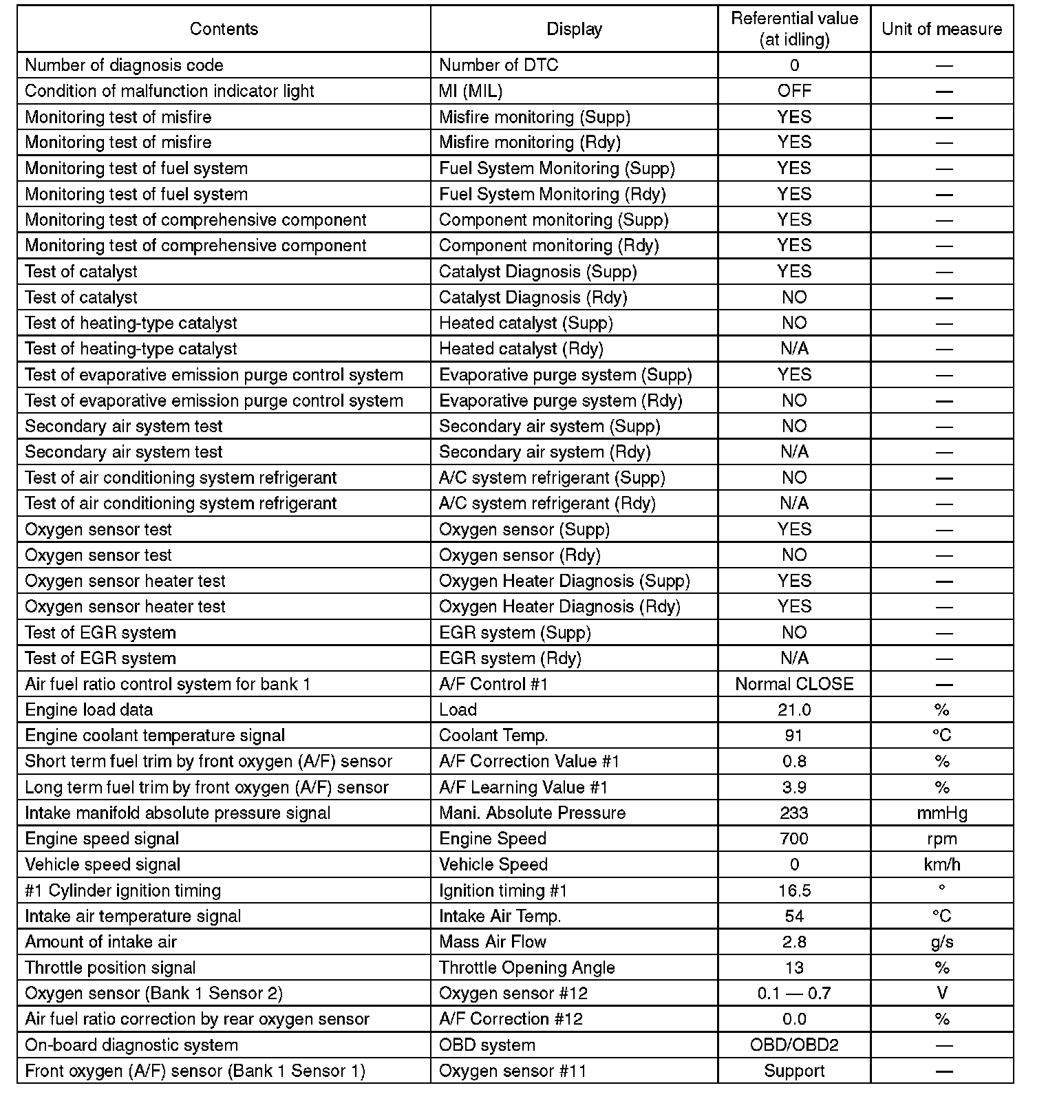5. READ CURRENT DATA FOR ENGINE (OBD MODE)
