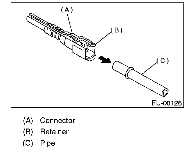 1. Set the new retainer (B) to connector (A).