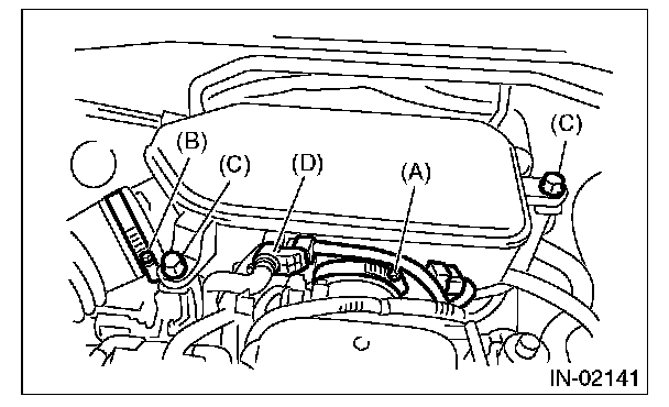3. Remove the bolt (C) which secures air intake chamber to the stay.