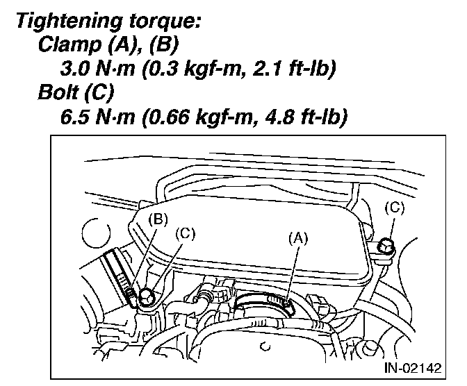 2. Loosen the clamp (B) which connects the duct to air intake chamber.