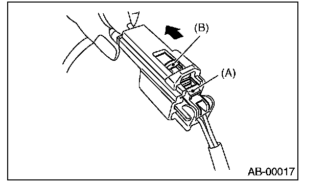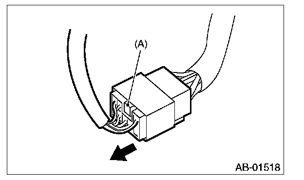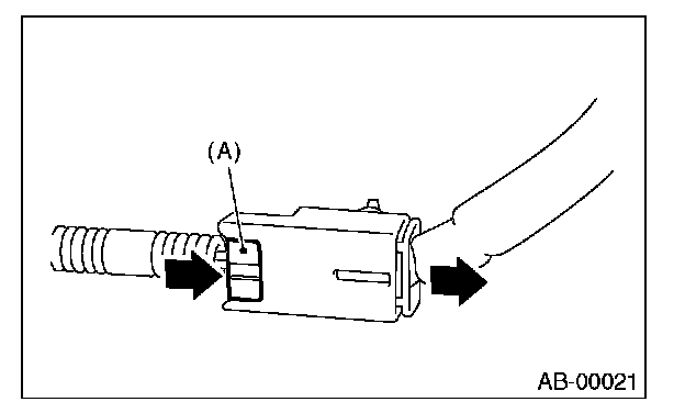 1. With the lock arm (A) pushed in, move the connector in the direction of arrow.