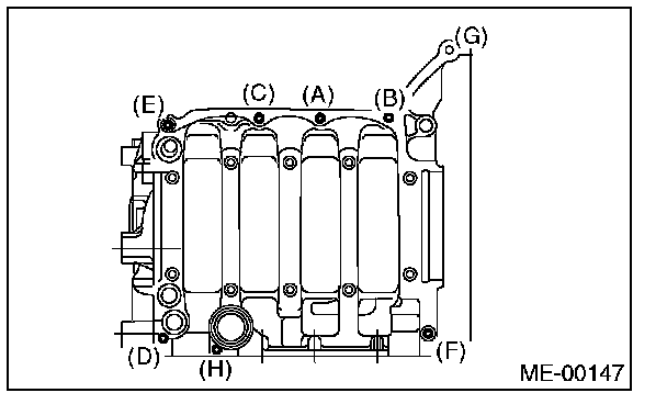 Tighten all bolts to 29 N-m (3.0 kgf-m, 21.4 ft-lb) in alphabetical sequence.