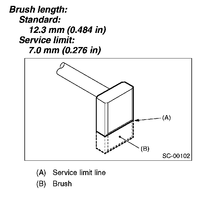 Measure the length of the brush. If it exceeds service limits, replace it.