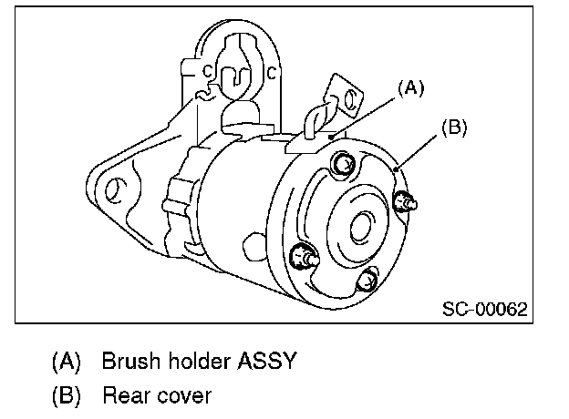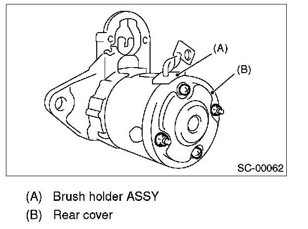 4. Remove the bolts passing through both sides, and the brush holder screws, then remove rear cover and brush holder assembly.