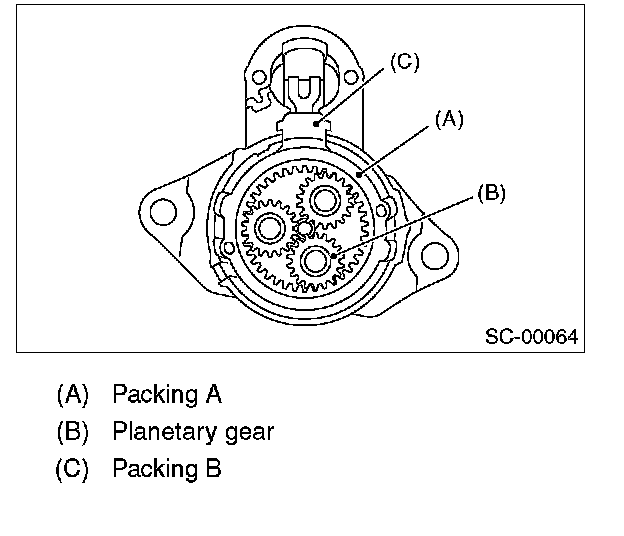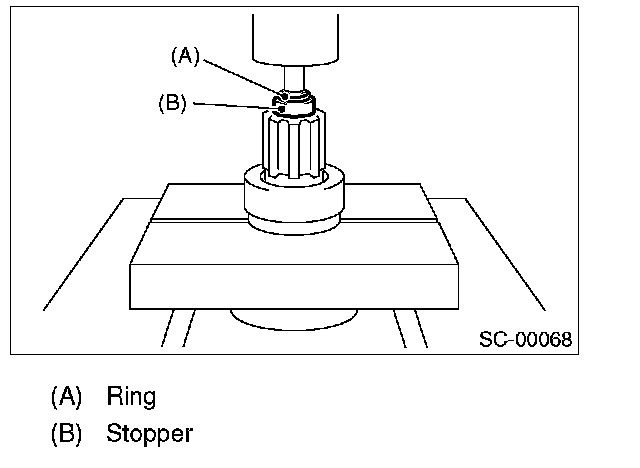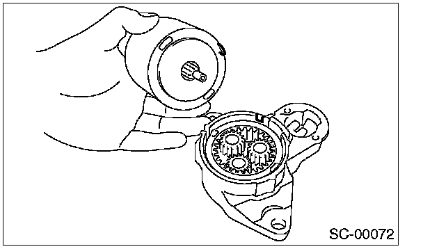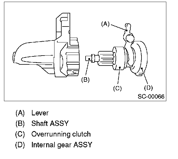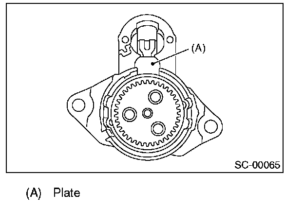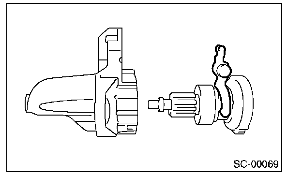 1. Using a lead wire, connect the terminal S of switch assembly to positive terminal of battery, and starter body to ground terminal of battery. The pinion should be forced endwise on shaft.