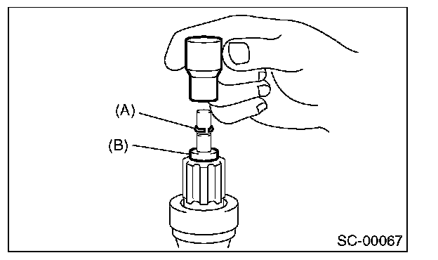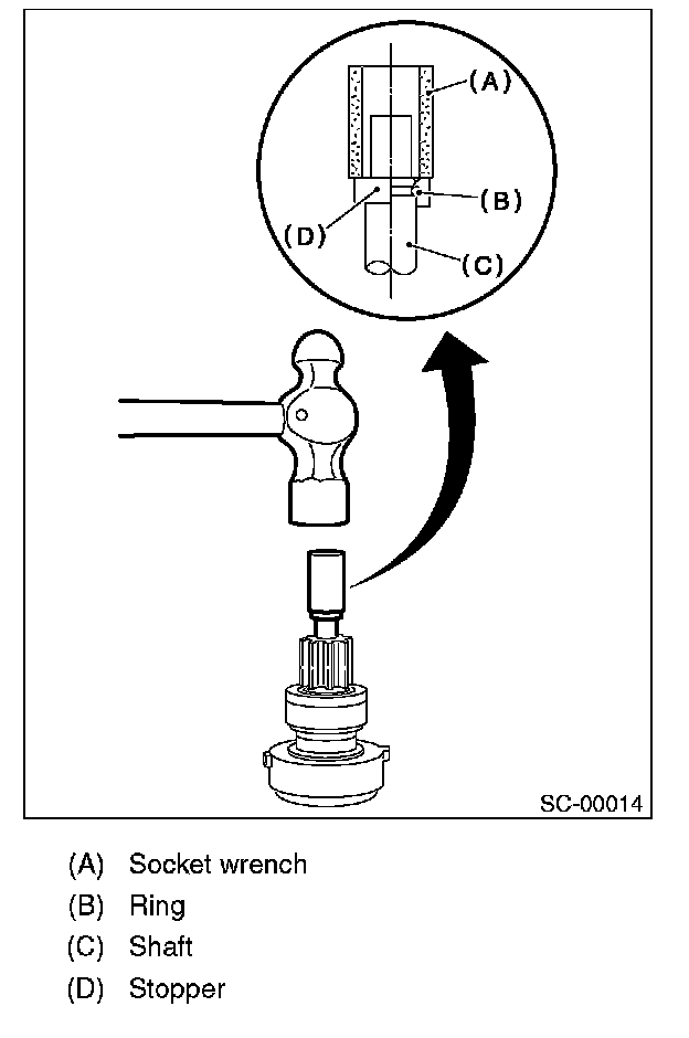1. Use the appropriate tool (such as the right size of socket wrench) to lightly tap on the ring to insert it into the shaft groove.