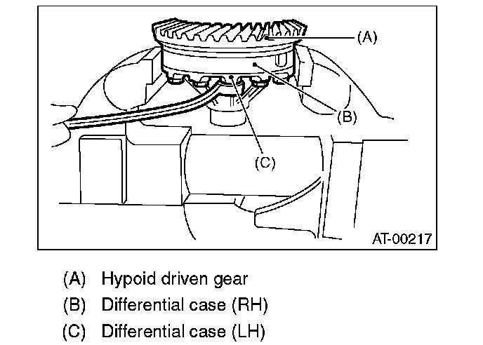 3) Install the washer and differential bevel gear to differential case (LH). Put the differential case (RH) on the case, and then assemble the two cases.