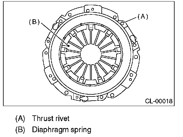 2) Damaged or worn bearing contact area at the center of diaphragm spring
