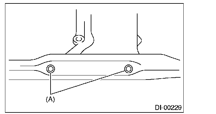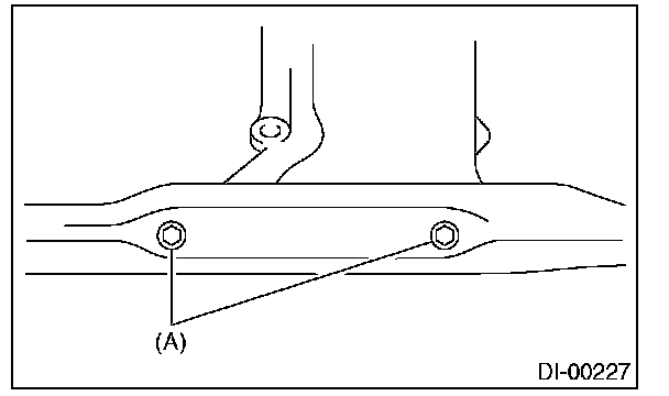 1) Temporarily tighten bolts (A) that secure the front differential member and differential bracket.