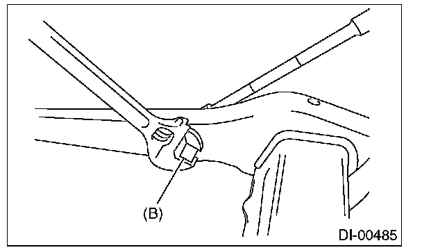 1) Remove the bolts (A) and (B) which secure the front differential member and the differential bracket.